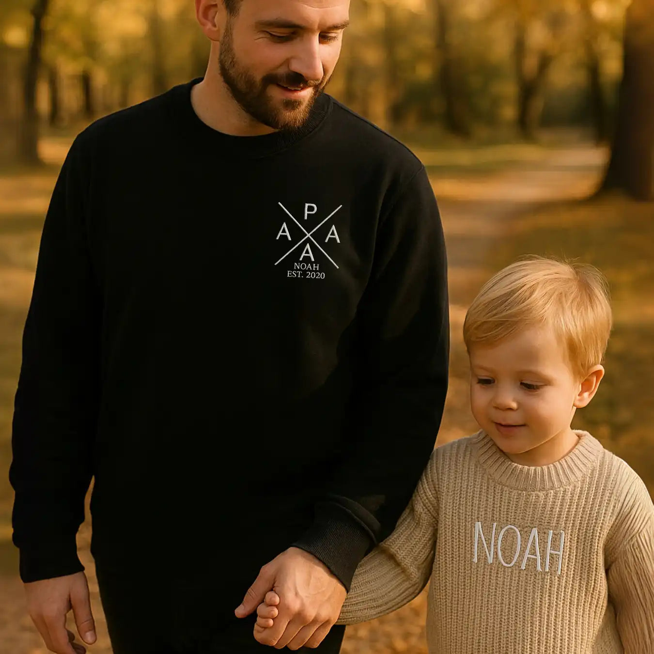 "Papa Crossed & Junior" - Personalisiertes, besticktes Sweatshirt-Set mit Kindernamen