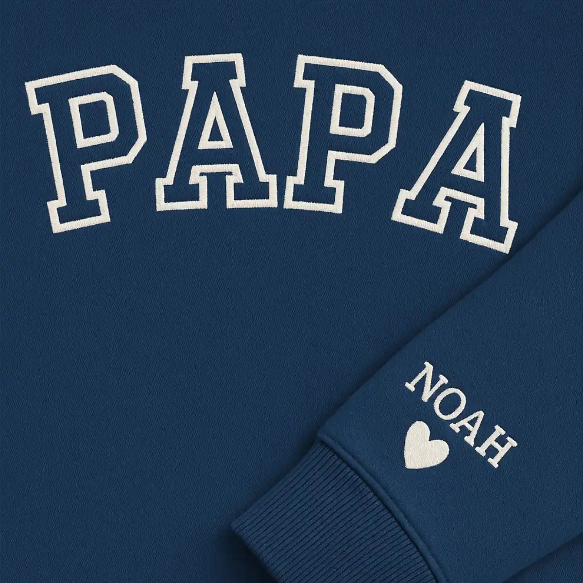 Ein echtes Statement für die schönste Verbindung der Welt – beide Sweatshirts personalisiert mit dem Namen des Kindes und veredelt mit hochwertiger Stickerei, die das Papa-Kind-Duo perfekt in Szene setzt.