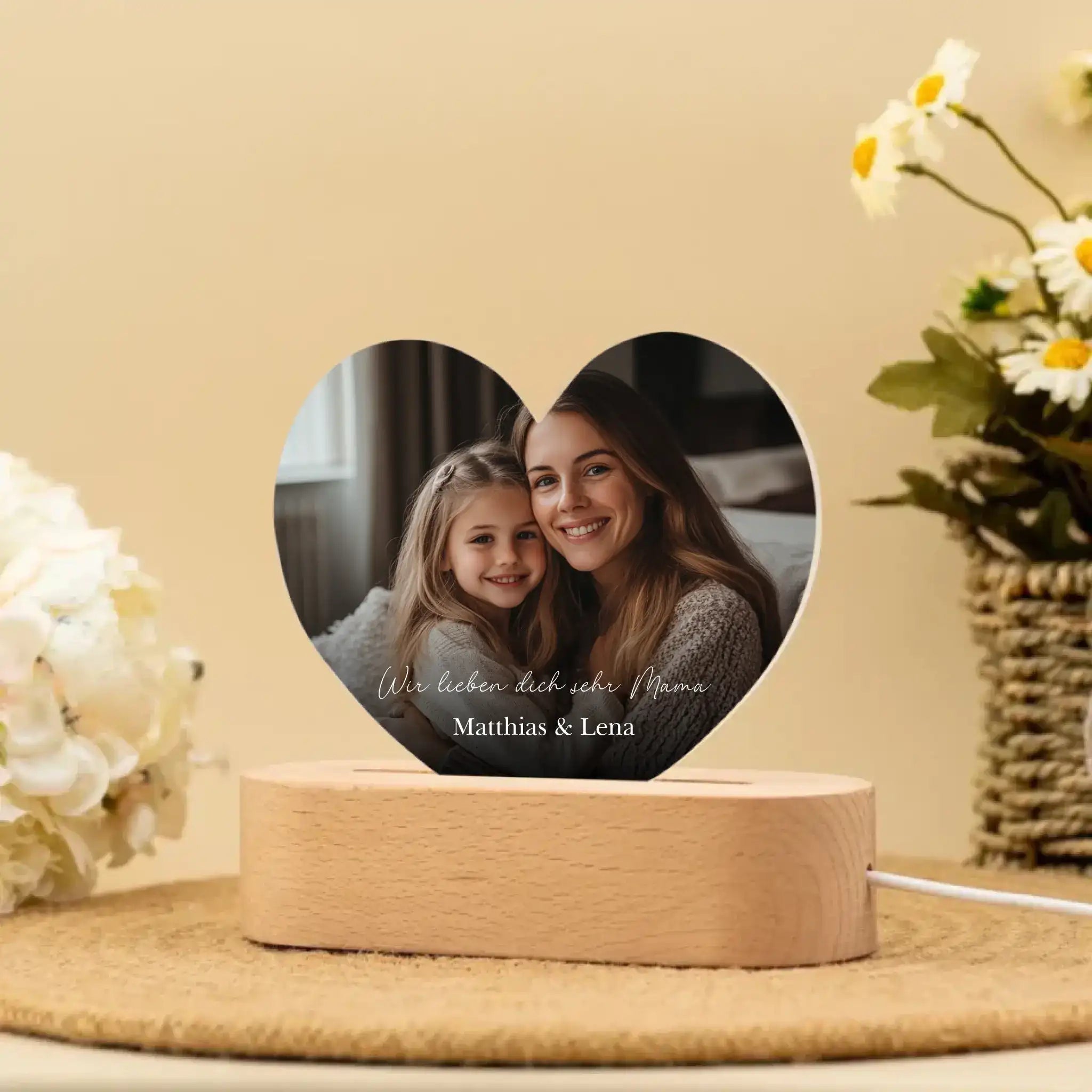 Euer Foto und die persönliche Widmung machen dieses Nachtlicht zu einem einzigartigen Symbol eurer besonderen Verbindung.