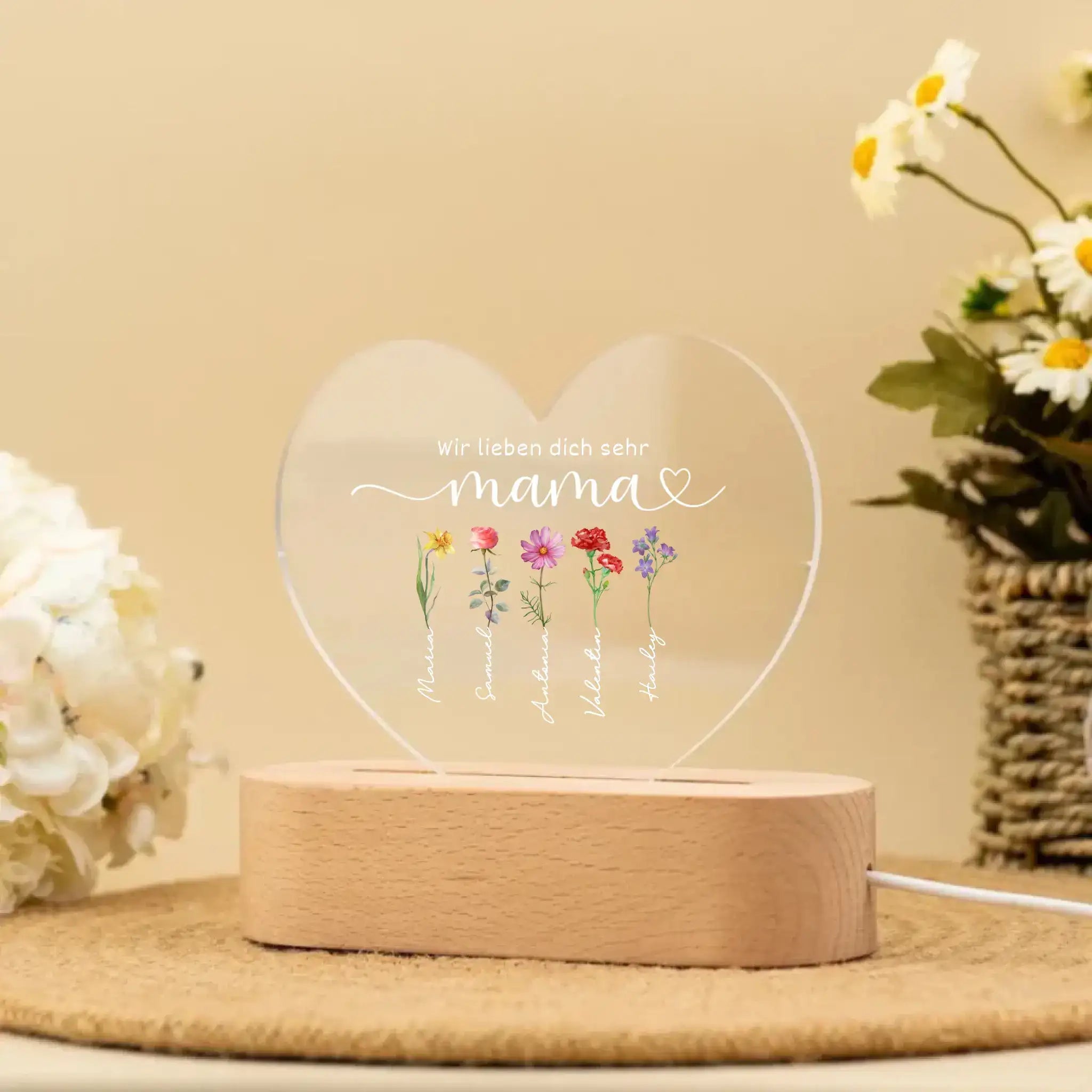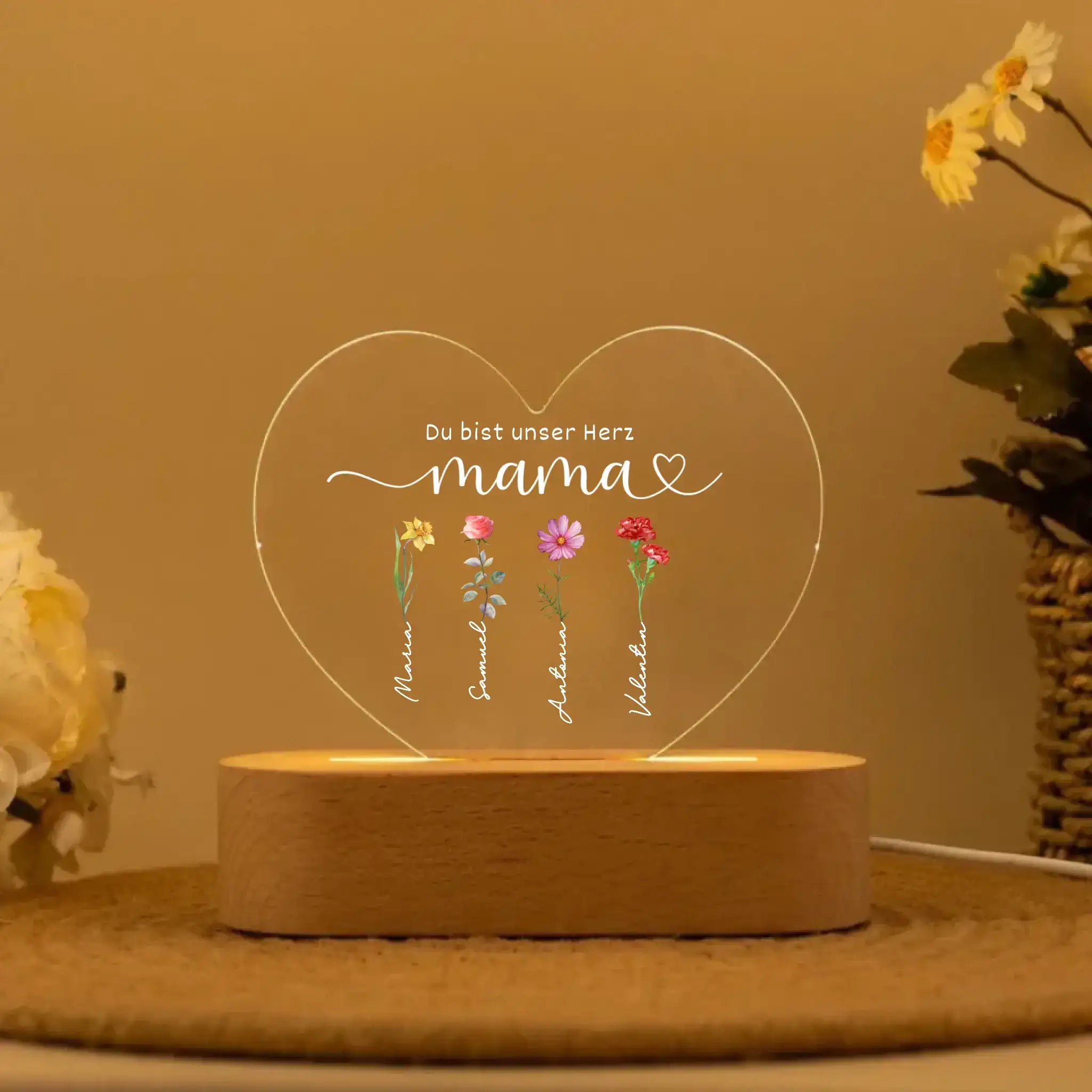 “Mama’s Garten” - Personalisiertes Herz Nachtlicht