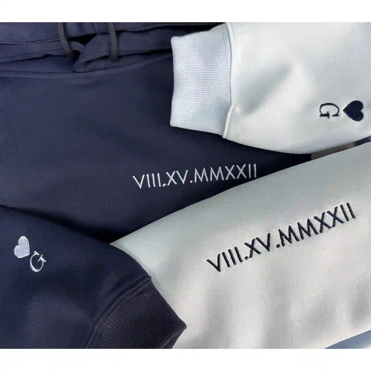 Überrasche deinen Lieblingsmenschen mit einem personalisierten Hoodie, der eure schönsten Momente feiert. Der elegante, gestickte Schriftzug in römischen Zahlen verewigt ein besonderes Datum – sei es der Jahrestag, das Hochzeitsdatum oder ein anderer unvergesslicher Moment.