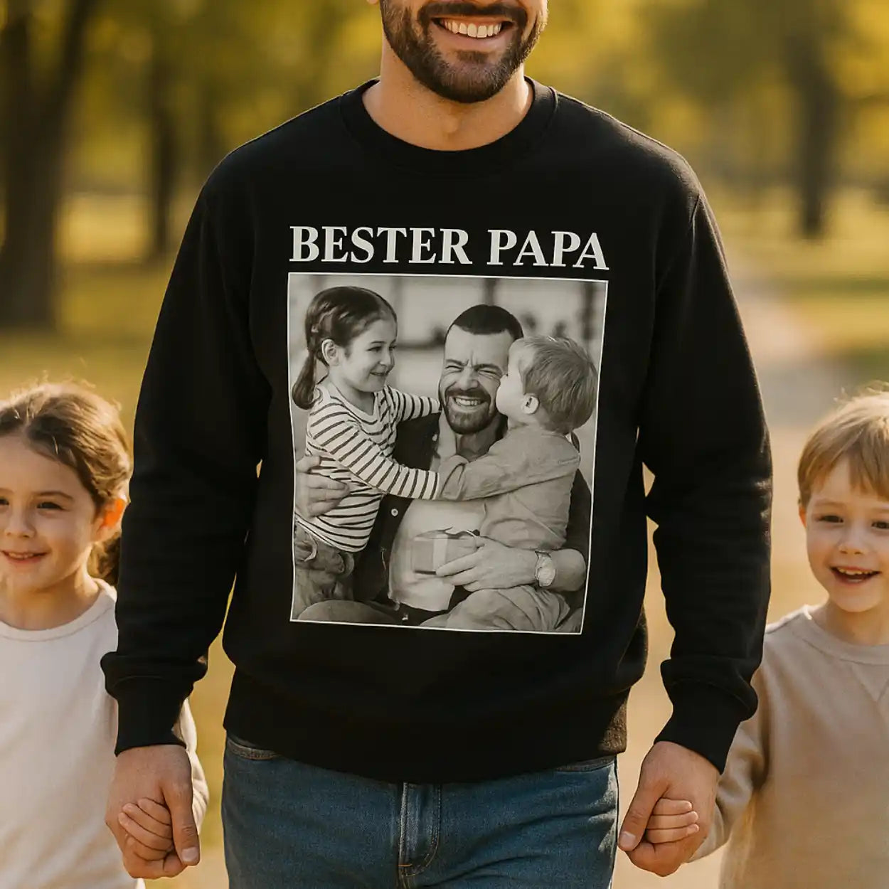Das individuelle Print Design macht jedes Sweatshirt zu einem echten Unikat und Hingucker. Wähle die wertvollsten Fotos mit Papa und den Kindern und erschaffe das neue Lieblingsstück in seinem Kleiderschrank.